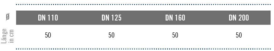 • Foliendurchmesser: bis DN 160 / 50 cm, DN 200 / 65 cm• Auch als PVC-Vollwandrohr erhältlich